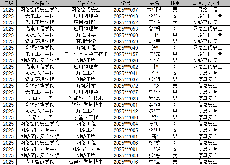2025年申请转入幸运轮盘 学生名单(2025年统一转专业)