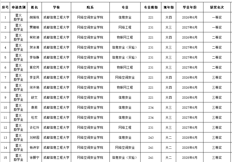 2025年度“安恒星火励学金” 评选结果公示