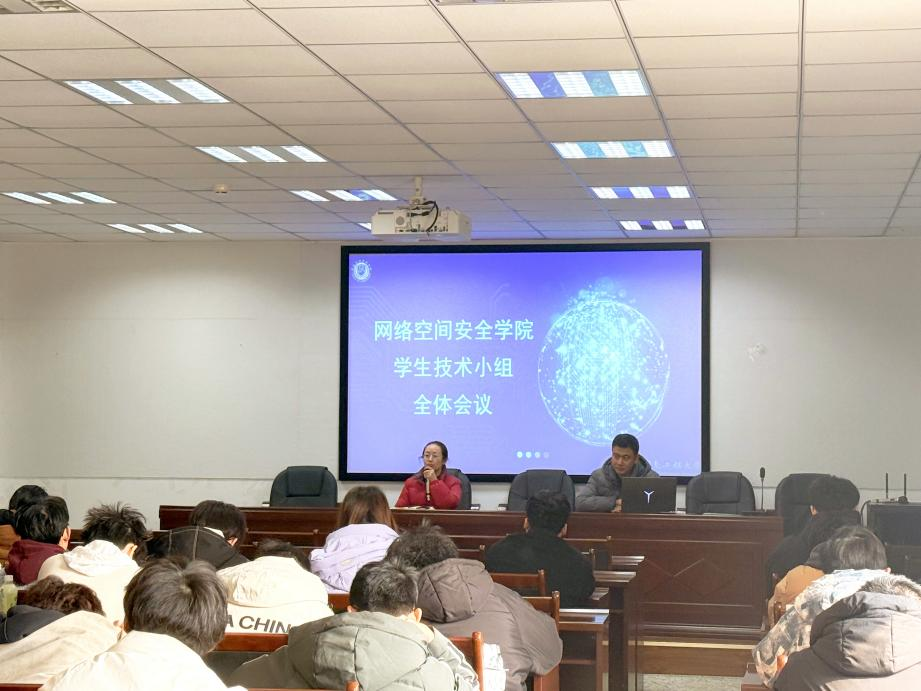 竞赛服务中心主任段光明老师、辅导员贾茜老师及学生技术小组全体成员参加会议,会议围绕实验室安全、专业能力提升、竞赛相关规范等核心内容展开部署。